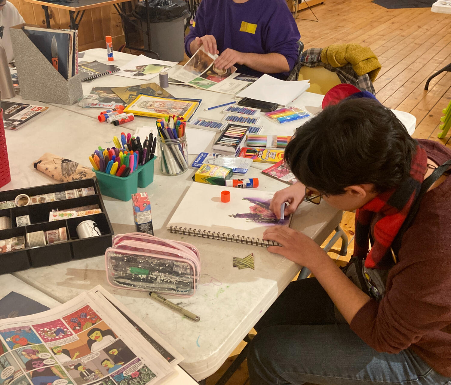 When you arrive, you can choose a seat at the table. We usually start with a warm-up, put on some music, and chat while we draw. You can try the activities we have prepped, or you can do your own thing. Nothing is mandatory. We might explore portraiture, still-life, abstract, or something else! If you prefer to work totally independently, you can create in the company of other creative people while listening to some chill tunes! People tend to drop-in and out at different times, and we usually begin wrapping up around 8:00pm. Occasionally, we have Goodlines On The Go where we walk to Waterloo Park and make art outside!