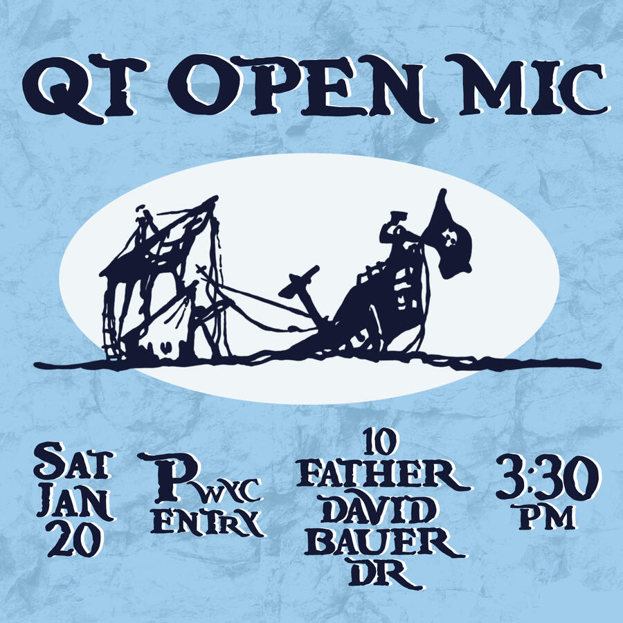 QT Open Mic is a seasonal open mic event centring queer, trans, LGBT+ performers! It's a light-hearted and cozy place to hang out, listen, and practice performing in a low-pressure environment. All are welcome!